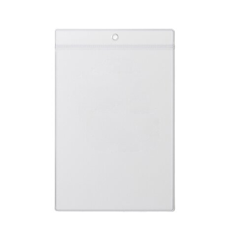Deze flexibele badgehouder is ideaal om uw A5 formaat badges, toegangskaarten en naamkaarten netjes en professioneel te presenteren tijdens beurzen en evenementen. Dankzij het transparante materiaal blijven uw teksten en afbeeldingen goed zichtbaar. Opening & Perforatie De houder is voorzien van een opening aan de bovenzijde, waardoor badges eenvoudig in te schuiven en te verwisselen zijn. Bovenaan bevindt zich een perforatie met een diameter van 5 mm. Hierdoor kan de badgehouder gemakkelijk worden bevestigd aan een keycord of badgeclip. Dit maakt de houder zeer geschikt voor gebruik op beurzen, congressen en zakelijke evenementen. Specificaties Papierformaat: A5 Materiaal: Transparant PVC Perforatie: Ø 5 mm