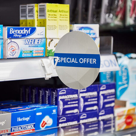 Met deze kaarthouder presenteert u eenvoudig informatie aan een prijsrail of scannerprofiel. De houder schuift moeiteloos over de transparante voorzijde van een prijsrail en is geschikt voor prijsrails met een hoogte van 30 mm of 39 mm. Aan de voorzijde biedt deze houder ruimte voor folders, flyers of prijskaarten met een dikte van maximaal 0,5 mm. Door een klein gaatje in de afbeelding te prikken, blijft de prijskaart stevig op zijn plaats zitten. Specificaties Insteek grip: tot 0,5 mm Breedte: 15mm Materiaal: Kunststof