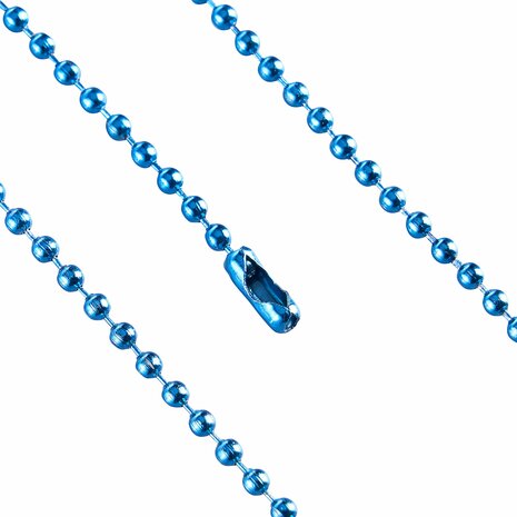 Deze kogelketting met sluiting is op maat gemaakt met een lengte van 10 cm. Ideaal voor diverse toepassingen, zoals het ophangen van meubelkaarthoezen, prijslabels of voor decoratieve doeleinden. Specificaties Lengte: 10 cm Kleur: Blauw Kogeldiameter: 2,4mm