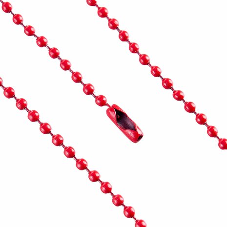 Deze kogelketting met sluiting is op maat gemaakt met een lengte van 10 cm. Ideaal voor diverse toepassingen, zoals het ophangen van meubelkaarthoezen, prijslabels of voor decoratieve doeleinden. Specificaties Lengte: 10 cm Kleur: Rood Kogeldiameter: 2,4mm