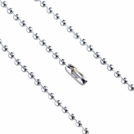 Deze kogelketting met sluiting is op maat gemaakt met een lengte van 30 cm. De ketting is chroomkleurig en heeft kogels met een diameter van 2,4 mm. Ideaal voor diverse toepassingen, zoals het ophangen van meubelkaarthoezen, prijslabels of voor decoratieve doeleinden. Specificaties Lengte: 30 cm Kleur: Chroom Kogeldiameter: 2,4mm
