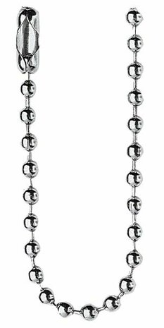 Deze kogelketting met sluiting is op maat gemaakt met een lengte van 40 cm. De ketting is chroomkleurig en heeft kogels met een diameter van 2,4 mm. Ideaal voor diverse toepassingen, zoals het ophangen van meubelkaarthoezen, prijslabels of voor decoratieve doeleinden. Specificaties Lengte: 40 cm Kleur: Chroom Kogeldiameter: 2,4mm