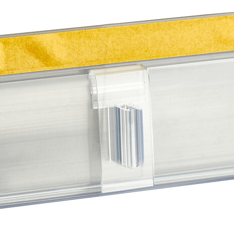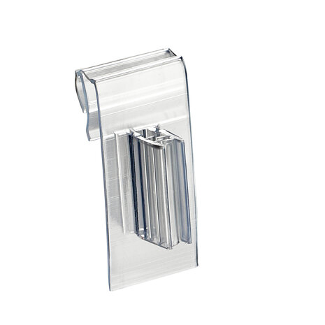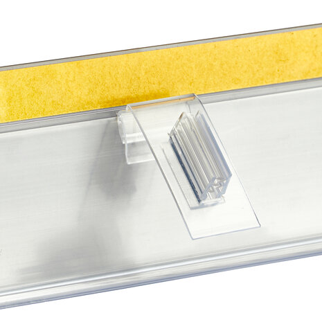 Met deze Supergrip presenteert u eenvoudig informatie aan een prijsrail of scannerprofiel. De houder kan moeiteloos over de transparante voorzijde van een prijsrail worden geschoven, terwijl u aan de andere kant folders, flyers of prijskaarten kunt plaatsen met een maximale dikte van 2 mm. Daarnaast is de houder scharnierend, wat zorgt voor extra flexibiliteit. Specificaties Insteek grip: tot 2mm Breedte: 19mm Materiaal: PVC