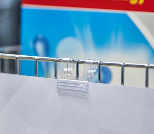 Met deze Supergrip presenteert u eenvoudig informatie op een buis of draadrek. De houder kan moeiteloos worden bevestigd op een buis met een maximale diameter van 9 mm. Aan de andere zijde kunt u folders, flyers of prijskaarten plaatsen met een maximale dikte van 2 mm. Specificaties Insteek grip: tot 2mm Breedte: 35mm Materiaal: PVC