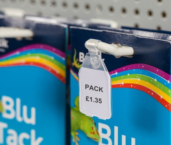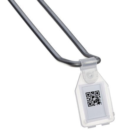 Prijslabel Met deze scanvaantjes bevestigt u eenvoudig prijskaartjes aan de voorzijde van onze dubbele displayhaken. Ze zijn geschikt voor kaartjes van 25 x 27 mm, die u eenvoudig in de scanvaantjes steekt. De labels passen op displayhaken met een maximale dikte van 6 mm, waardoor ze geschikt zijn voor al onze displayhaken. Specificaties Materiaal: Kunststof Kleur: Transparant