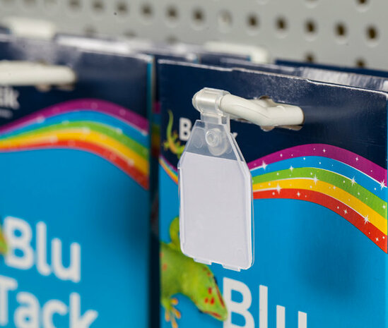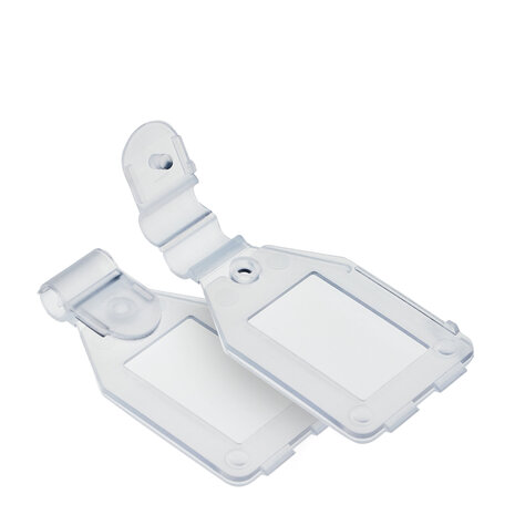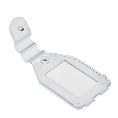 Prijslabel Met deze scanvaantjes bevestigt u eenvoudig prijskaartjes aan de voorzijde van onze dubbele kunststof displayhaken. Ze zijn geschikt voor kaartjes van 25 x 27 mm, die u eenvoudig in de scanvaantjes steekt. Type: Small-4 Deze labels passen uitsluitend op onze kunststof displayhaken. Deze haken hebben aan de voorzijde een speciale versmalling van 4mm voor het bevestigen van deze Small-4 scanvaantjes. Voor metalen displayhaken adviseren wij onze Wide-6 scanvaantjes. Deze zijn universeler en geschikt voor displayhaken met een maximale dikte van 6 mm. Specificaties Materiaal: Kunststof Kleur: Transparant