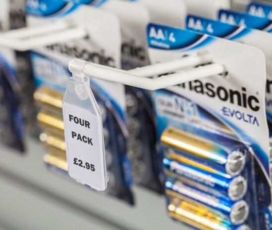 Prijslabel Met deze scanvaantjes bevestigt u eenvoudig prijskaartjes aan de voorzijde van onze dubbele displayhaken. Ze zijn geschikt voor kaartjes van 25 x 38 mm, die u eenvoudig in de scanvaantjes steekt. De labels passen op displayhaken met een maximale dikte van 6 mm, waardoor ze geschikt zijn voor al onze displayhaken. Specificaties Materiaal: Kunststof Kleur: Transparant