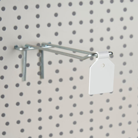 Prijslabel Met deze scanvaantjes bevestigt u eenvoudig prijskaartjes aan de voorzijde van onze dubbele displayhaken. Ze zijn geschikt voor stickers van 25 x 25 mm, die u eenvoudig op de scanvaantjes plakt De labels passen op displayhaken met een maximale dikte van 6 mm, waardoor ze geschikt zijn voor al onze displayhaken. Specificaties Materiaal: Kunststof Kleur: Wit