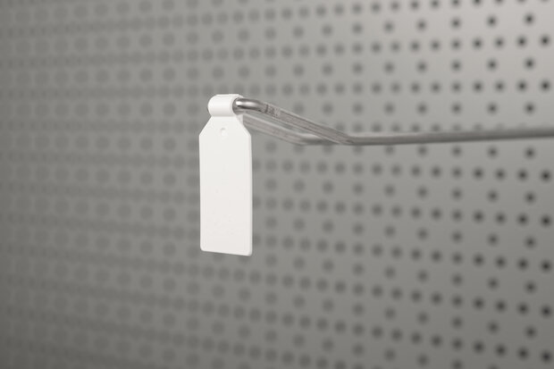 Prijslabel Met deze scanvaantjes bevestigt u eenvoudig prijskaartjes aan de voorzijde van onze dubbele displayhaken. Ze zijn geschikt voor stickers van 25 x 38 mm, die u eenvoudig op de scanvaantjes plakt Type: Wide-6 Deze labels passen op onze metalen displayhaken. Deze scanvaantjes zijn geschikt voor displayhaken met een maximale dikte van 6 mm. Let op: deze Wide-6 scanvaantjes passen niet op onze kunststof displayhaken. Voor onze kunststof displayhaken adviseren wij onze Small-4 scanvaantjes. Deze kunststof haken hebben aan de voorzijde een versmalling van 4mm speciaal voor het bevestigen van de Small-4 scanvaantjes. Specificaties Materiaal: Kunststof Kleur: Wit