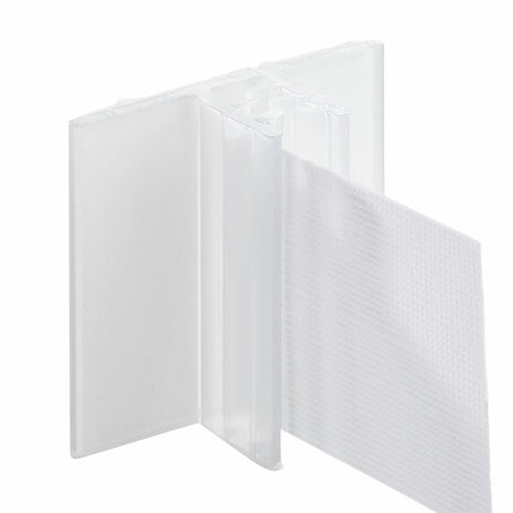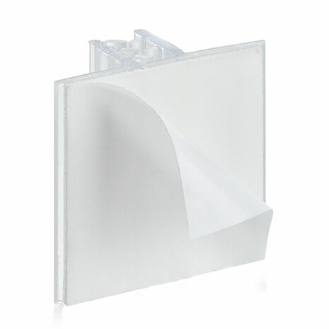 Deze zelfklevende grippers zijn gemaakt om folders, flyers, prijskaarten of andere documenten op een nette manier te presenteren. Dankzij de sterke kleeflaag aan de onderzijde bevestigt u de grippers eenvoudig op vrijwel ieder glad oppervlak. U kunt ze zowel horizontaal als verticaal gebruiken, waardoor ze veelzijdig inzetbaar zijn. De insteekgleuf is geschikt voor het plaatsen van documenten met een maximale dikte van 2 mm. De binnenzijde is voorzien van een supergrip, die zorgt voor een stevige bevestiging. Specificaties Insteek grip: tot 2 mm Kleur: Transparant Materiaal: PVC Voorzien van een zelfklevende laag aan de onderkant. Afmeting onderkant: 25 mm x 25 mm
