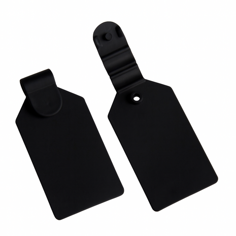 Prijslabel Met deze scanvaantjes bevestigt u eenvoudig prijskaartjes aan de voorzijde van onze dubbele displayhaken. Ze zijn geschikt voor stickers van 25 x 38 mm, die u eenvoudig op de scanvaantjes plakt. De labels passen op displayhaken met een maximale dikte van 6 mm, waardoor ze geschikt zijn voor al onze displayhaken. Specificaties Materiaal: Kunststof Kleur: Zwart