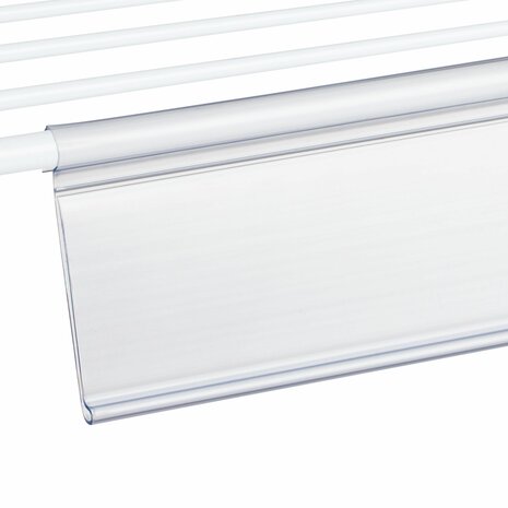 Deze prijskaarthouder bevestigt u eenvoudig aan de voorzijde van onze transparante arms & displayhaak-adapters. Ze hebben een breedte van 105 mm en zijn geschikt voor het presenteren van prijskaartjes met een hoogte van 39 mm. Specificaties Breedte: 105 mm Invoerhoogte: 39 mm Materiaal: Kunststof Kleur: Transparant
