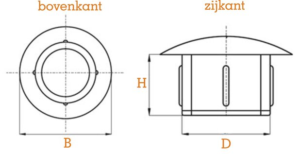 B = Diameter van de bovenkant