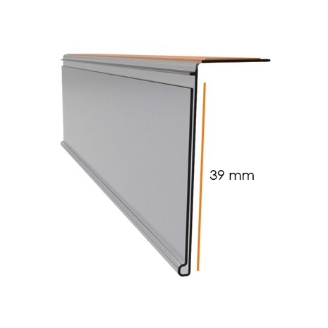 Deze zelfklevende prijsrail biedt een praktische en duurzame oplossing voor het weergeven van prijs- of productinformatie op winkelrekken en magazijnstellingen. Dankzij de sterke zelfklevende tape hecht de prijsrail eenvoudig en stevig op vrijwel elk type schap, waardoor het een betrouwbare, langdurige oplossing is die geen extra bevestigingsmaterialen vereist. Let op, de plakrand van deze strip zit aan de bovenkant. Je kan deze strips daarmee aan de onderkant van uw schappen bevestigen. De strip is scharnierend aan de bovenkant (zie afbeelding) De transparante voorzijde maakt het mogelijk om barcodes en prijsinformatie eenvoudig te scannen, wat deze scanrail ideaal maakt voor gebruik in winkels, magazijnen en andere opslaglocaties waar duidelijke en goed leesbare labeling essentieel is. Afmetingen Invoeghoogte: 39 mm Lengte: 1250 mm Heeft u een andere lengte nodig? Geen probleem. Mail uw wensen naar info@goodline.nl en we komen er z.s.m. bij u op terug Kenmerken: Materiaal: PVC Kleur: Transparant Extra info De plakrand is gemaakt van transparante tape. Op de afbeelding is dit rood ter illustratie
