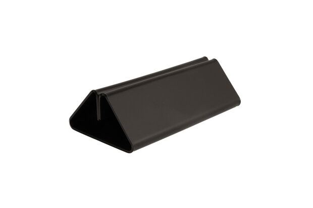 Deze houders zijn ideaal voor het presenteren van informatie op tafels, balies of toonbanken. De kaarthouders zijn geschikt voor het insteken van documenten met een maximale dikte van 4mm. Dit maakt deze houder ook geschikt voor neerzetten van bijvoorbeeld acrylglas displays of krijtbordjes. Toepassing De toepassingen van deze houder zijn bijzonder veelzijdig. Denk bijvoorbeeld aan: Horeca: Veel gebruikt als menukaarthouder van menukaarten, drankenkaarten of speciale aanbiedingen op tafels in restaurants, cafés of hotels. Winkels: Ideaal voor het presenteren van prijzen, promoties of productinformatie in winkels en showrooms. Kantoor & receptie: Een professionele manier om bezoekersinformatie of instructies goed zichtbaar weer te geven. Beurzen & evenementen: Geschikt voor het tonen van uw bedrijfsinformatie of promoties op een beursstand of balie. Formaat Lengte: 14,8 cm Hoogte: 4,5 cm Diepte: 8 cm Materiaal Deze houders zijn gemaakt van zwart acrylglas.