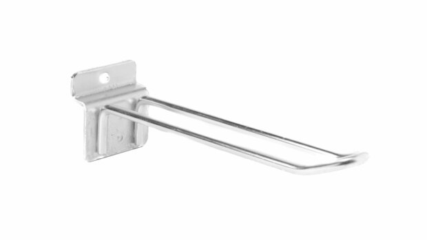 Deze metalen haak is speciaal ontworpen voor bevestiging aan standaard lamellenwanden / slatwalls.