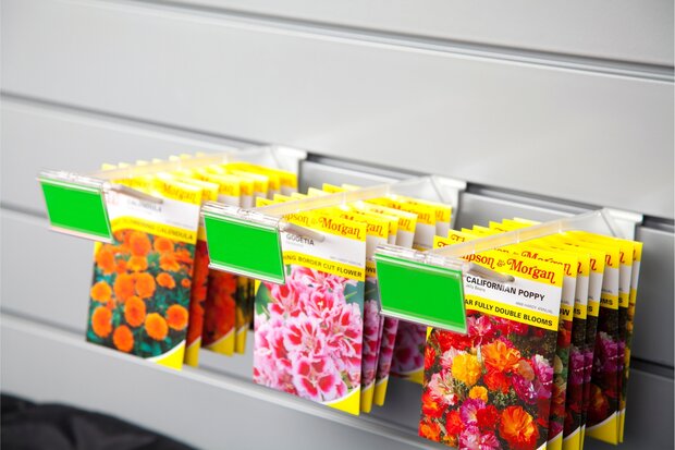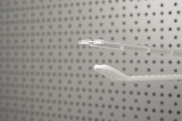 Geschikt voor onze dubbele kunststof displayhaken met een lengte van 15 cm