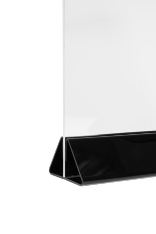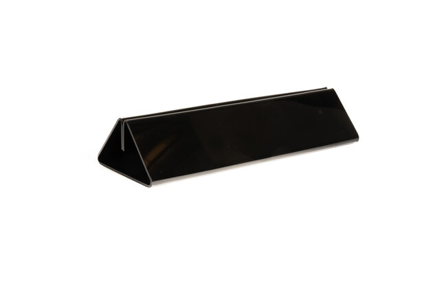 Deze houders zijn ideaal voor het presenteren van informatie op tafels, balies of toonbanken. De kaarthouders zijn geschikt voor het insteken van documenten met een maximale dikte van 4mm. Dit maakt deze houder ook geschikt voor neerzetten van bijvoorbeeld acrylglas displays of krijtbordjes. Toepassing De toepassingen van deze houder zijn bijzonder veelzijdig. Denk bijvoorbeeld aan: Horeca: Veel gebruikt als menukaarthouder van menukaarten, drankenkaarten of speciale aanbiedingen op tafels in restaurants, cafés of hotels. Winkels: Ideaal voor het presenteren van prijzen, promoties of productinformatie in winkels en showrooms. Kantoor & receptie: Een professionele manier om bezoekersinformatie of instructies goed zichtbaar weer te geven. Beurzen & evenementen: Geschikt voor het tonen van uw bedrijfsinformatie of promoties op een beursstand of balie. Formaat Lengte: 21 cm Hoogte: 4,5 cm Diepte: 8 cm Materiaal Deze houders zijn gemaakt van zwart acrylglas.