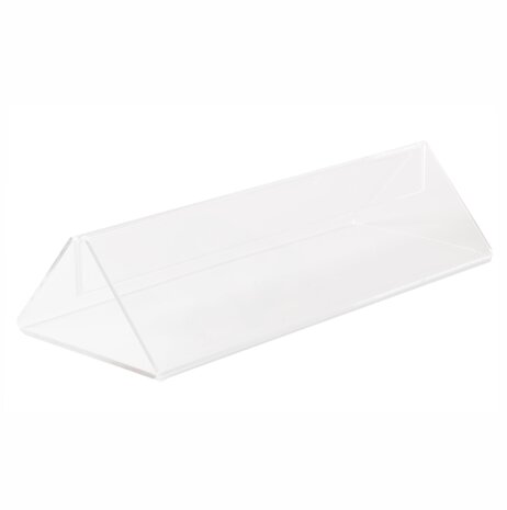 Deze houders zijn ideaal voor het presenteren van informatie op tafels, balies of toonbanken. De kaarthouders zijn geschikt voor het insteken van documenten met een maximale dikte van 4mm. Dit maakt deze houder ook geschikt voor neerzetten van bijvoorbeeld acrylglas displays of krijtbordjes. Toepassing De toepassingen van deze houder zijn bijzonder veelzijdig. Denk bijvoorbeeld aan: Horeca: Veel gebruikt als menukaarthouder van menukaarten, drankenkaarten of speciale aanbiedingen op tafels in restaurants, cafés of hotels. Winkels: Ideaal voor het presenteren van prijzen, promoties of productinformatie in winkels en showrooms. Kantoor & receptie: Een professionele manier om bezoekersinformatie of instructies goed zichtbaar weer te geven. Beurzen & evenementen: Geschikt voor het tonen van uw bedrijfsinformatie of promoties op een beursstand of balie. Formaat Lengte: 21 cm Hoogte: 4,5 cm Diepte: 8 cm Materiaal Deze houders zijn gemaakt van transparant acrylglas (2mm)