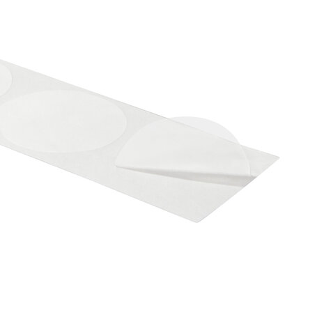 Transparante 60mm Ronde Sluitzegels / Sluitsticker Deze ronde sluitzegels bieden een efficiënte en nette oplossing voor het afsluiten van verpakkingen, enveloppen, brochures en andere materialen. Dankzij de transparante afwerking en stevige kleefkracht zijn deze sluitstickers ideaal voor dagelijks gebruik, zowel zakelijk als persoonlijk. De transparante afwerking zorgt ervoor dat de sluitzegels nauwelijks zichtbaar zijn, waardoor ze aantrekkelijk blijven en perfect passen bij uiteenlopende materialen, kleuren en designs. Toepassingen Verpakking: Geschikt voor het veilig afsluiten van dozen, zakken en andere verpakkingen. Documenten: Verzegel brochures, folders of enveloppen op een nette en onopvallende manier. Presentatie: Dankzij de transparante finish blijven ontwerpen en logo’s zichtbaar. Eigenschappen Diameter: Ø 60 mm Zelfklevend: Enkelzijdig zelfklevend Perforatie: Zonder perforatie Aantal: 1000 zegels per rol Roltype: Naar buiten gerold Materiaal: PE (polyethyleen) Afwerking: Transparant