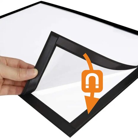 Snelle wisseling van inhoud: Magnetische strips zorgen ervoor dat documenten moeiteloos kunnen worden vervangen zonder lijmresten of beschadigingen.