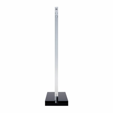 In combinatie met de 14 mm dikke zwarte acrylvoet ontstaat een luxe en moderne uitvoering van de klassieke T standaard.