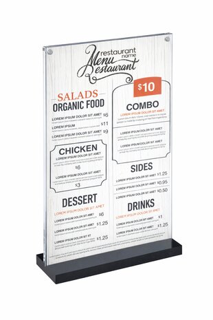 Of u nu speciale aanbiedingen, openingstijden, huisregels, dagelijks menu's, of andere details wilt tonen, deze houders zijn goed te gebruiken voor al deze toepassingen. Ook is deze uxe houder goed te gebruiken als fotolijst.
