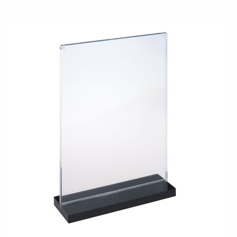 Met deze T-vorm houder kunt u A5-inserts aan beide zijden tonen, waardoor u optimaal gebruik kunt maken van de ruimte. Ideaal voor situaties waarin u zowel aan de voor- als achterzijde informatie wilt weergeven, zoals aan tafels of balies.