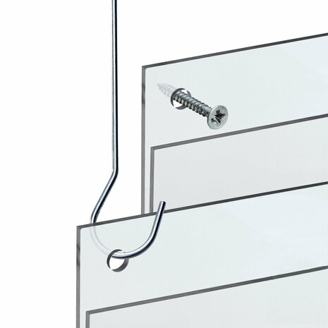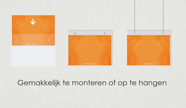 U kunt bijvoorbeeld zuignappen gebruiken om de houder aan een raam te bevestigen, plafondhaken om hem aan een systeemplafond op te hangen, of de houder met schroeven aan een wand of deur vastzetten. Deze veelzijdige bevestigingsmogelijkheden bieden u de flexibiliteit om de displays op de gewenste manier te plaatsen.