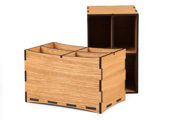 Houten Bestekbakje Deze houten 4-vaks bestekbak is gemaakt van eikenhout van 35 mm dik. Het bakje kan gebruikt worden voor bestek, peper&zout, sauzen, servetten, etc. Materiaal Geolied hout Afmetingen van de snijplank Lengte: 21 cm Breedte: 13 cm Hoogte: 13 cm