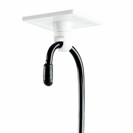 De kunststof houder is voorzien van een draaibare (360 graden) bevestigingsoog.