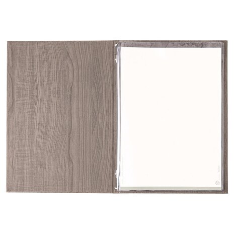 Luxury Hotelmap Deze informatiemap zorgt voor een stijlvolle en overzichtelijke presentatie van belangrijke informatie voor uw gasten, zoals huisregels, ontbijttijden, roomservice, toeristische tips en noodgevallen. Deze map is voorzien van een dubbele A4 insteekhoes en deze wordt d.m.v. een elastiek aan de binnenkant van de mappen bevestigd. Deze map heeft standaard 1 insteekhoes en door de 4 leeszijdes per insteekhoes is deze map geschikt voor 4 pagina's. Door een extra insteekhoes toe te voegen aan de map kunt u dit verhogen naar 8 pagina's. Materiaal Deze map is vervaardigd uit zacht, hoogwaardig kunstleer, wat zorgt voor een luxe en stijlvolle uitstraling. Bedrukte mappen De mappen zijn standaard onbedrukt, maar kunnen worden voorzien van een bedrukking. Voor meer informatie over alle mogelijkheden kunt u kijken op onze pagina "Bedrukking / Maatwerk". Afmetingen Dichtgevouwen: 32 cm x 22.7 cm