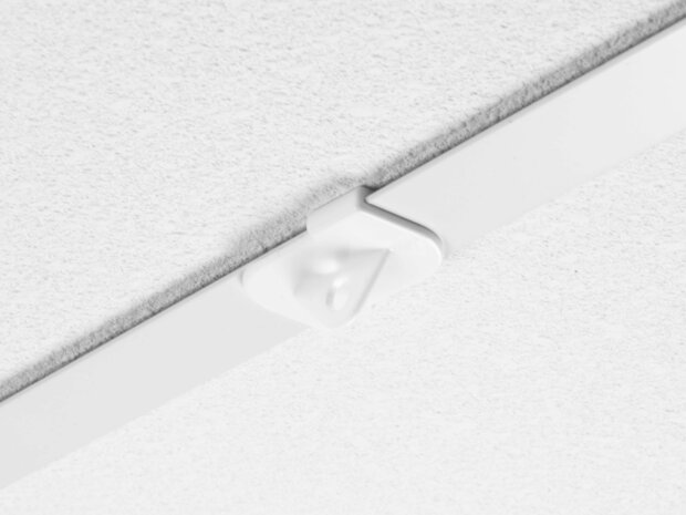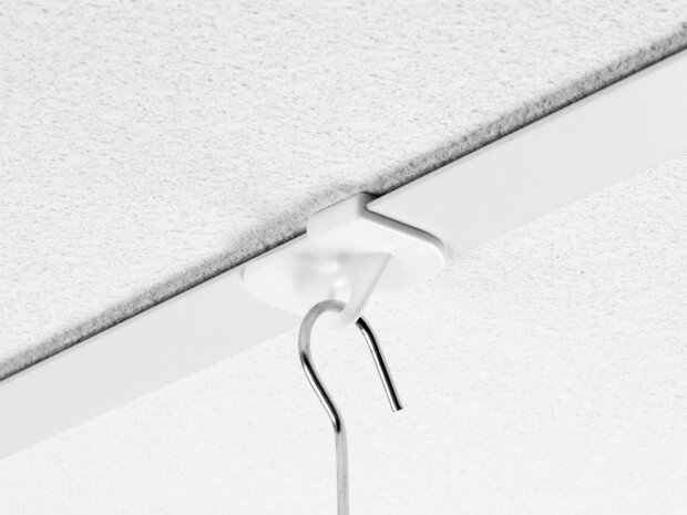 De kunststof houder kan eenvoudig en snel worden bevestigd aan het profiel van uw systeemplafond. Bovendien is de houder voorzien van een handig bevestigingsoog.