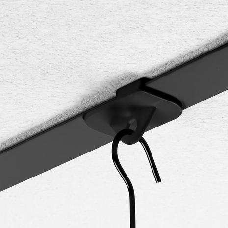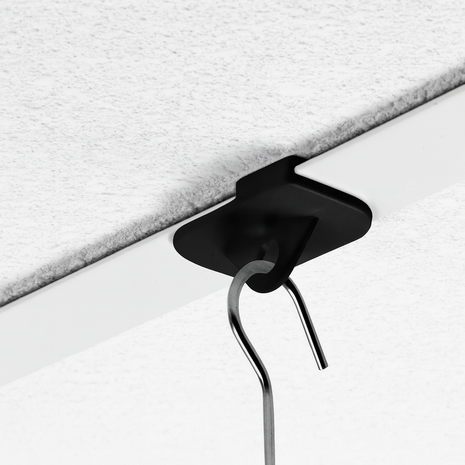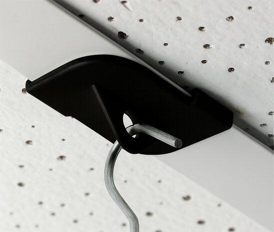 De kunststof houder kan eenvoudig en snel worden bevestigd aan het profiel van uw systeemplafond. Bovendien is de houder voorzien van een handig bevestigingsoog.