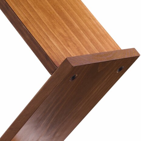 De houder beschikt over 5 vakken, geschikt voor A4-formaat folders, brochures of andere documenten. Deze stevige folderhouder is gemaakt van hout en gemakkelijk in elkaar te zetten. Specificaties Materiaal: Hout (gelakt) Hoogte: 130 cm Breedte: 22 cm Gewicht: 9.5 kg Materiaal: Hout