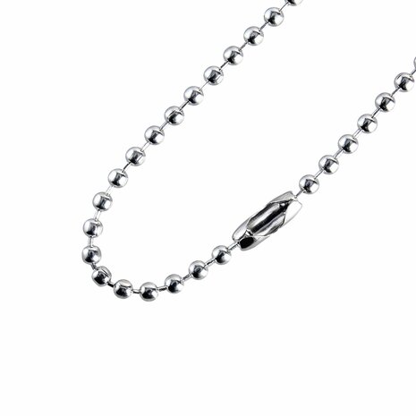 Deze kogelketting met sluiting is op maat gemaakt met een lengte van 15 cm. De ketting is chroomkleurig en heeft kogels met een diameter van 2,4 mm. Ideaal voor diverse toepassingen, zoals het ophangen van meubelkaarthoezen, prijslabels of voor decoratieve doeleinden. Specificaties Lengte: 15 cm Kleur: Chroom Kogeldiameter: 2,4mm