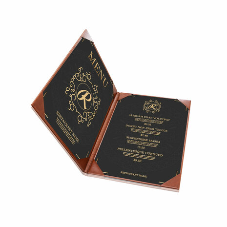 Menumap voor 2 menukaarten op A4 formaat, waarbij elke pagina aan één zijde leesbaar is. Deze menumap zorgt voor een stijlvolle presentatie van uw dinerkaart, lunchkaart, dessertkaart, wijnkaart en drankkaart. Ideaal voor restaurants, cafés, hotels, bistro’s en andere horecagelegenheden. Bevestiging van uw menukaart Uw A4 menukaarten worden op hun plaats gehouden door vier hoekstansingen, waardoor ze eenvoudig verwisselbaar zijn (zie afbeelding). Materiaal Deze menumap is vervaardigd uit zacht, hoogwaardig kunstleer, wat zorgt voor een luxe en stijlvolle uitstraling. Groot voordeel van dit materiaal is dat u de menumappen zeer gemakkelijk schoon kunt maken met een vochtige doek. Op zoek naar een andere kleur of bedrukte mappen? Op aanvraag is maatwerk mogelijk in diverse kleuren en afwerkingen. De mappen zijn standaard onbedrukt, maar kunnen worden voorzien van een bedrukking. Voor meer informatie over alle mogelijkheden kunt u kijken op onze pagina "Bedrukking / Maatwerk". Afmetingen Dichtgevouwen: 30,3 cm x 21.8 cm x 0,8 cm Opengevouwen: 30,3 cm x 44.7 cm x 0,4 cm