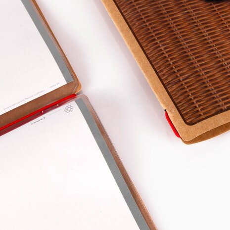 ECO Menumap Deze menumap is voorzien van een dubbele A4 insteekhoes en deze wordt d.m.v. een elastiek aan de binnenkant van de mappen bevestigd. Deze map heeft standaard 1 insteekhoes en door de 4 leeszijdes per insteekhoes is deze map geschikt voor 4 menukaarten. Door een extra insteekhoes toe te voegen aan de map kunt u dit verhogen naar 8 menukaarten. Materiaal Hoge kwaliteit cellulose vezels voor een stijlvolle uitstraling. Dit materiaal is zeer gemakkelijk schoon kunt maken met een vochtige doek. Let op: deze mappen bevatten geen karton (cardboard) en zijn daardoor flexibel. Afmetingen Dichtgevouwen: 31.8 cm x 23.2 cm Toepassing Deze menumappen zorgen voor een stijlvolle presentatie van uw dinerkaart, lunchkaart, dessertkaart, wijnkaart of koffie- en drankkaart. Levertijd De mappen zijn niet standaard op voorraad en worden op maat gemaakt zodra ze zijn besteld. Hierdoor hebben ze een levertijd van ongeveer 1-2 werkweken. Bedrukking Het is ook mogelijk om deze mappen te voorzien van uw eigen logo. Voor meer informatie over alle mogelijkheden kunt u kijken op onze pagina "Bedrukking / Maatwerk".
