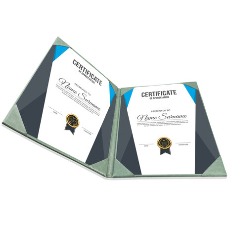 Deze diplomamap zorgt een stijlvolle presentatie van uw rapport, certificaat, diploma of andere documenten.