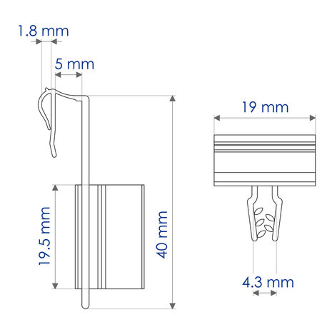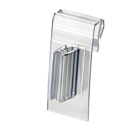 Met deze Supergrip presenteert u eenvoudig informatie aan een prijsrail of scannerprofiel. De houder kan moeiteloos over de transparante voorzijde van een prijsrail worden geschoven, terwijl u aan de andere kant folders, flyers of prijskaarten kunt plaatsen met een maximale dikte van 2 mm. Daarnaast is de houder scharnierend, wat zorgt voor extra flexibiliteit. Specificaties Insteek grip: tot 2mm Breedte: 19mm Materiaal: PVC