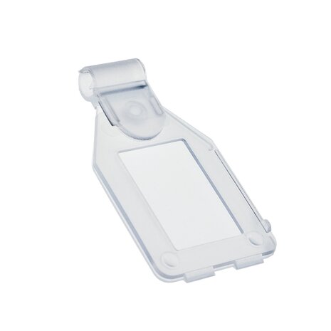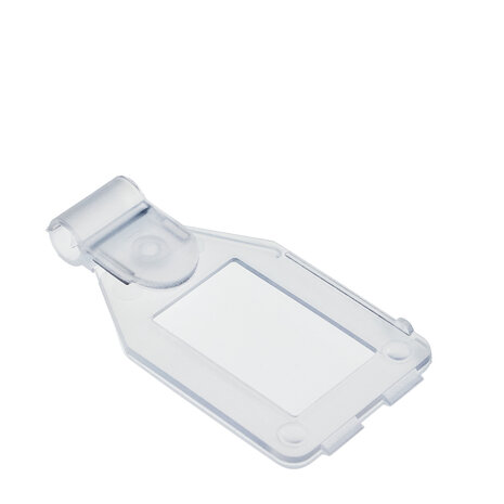 Prijslabel Met deze scanvaantjes bevestigt u eenvoudig prijskaartjes aan de voorzijde van onze dubbele kunststof displayhaken. Ze zijn geschikt voor kaartjes van 25 x 27 mm, die u eenvoudig in de scanvaantjes steekt. Type: Small-4 Deze labels passen uitsluitend op onze kunststof displayhaken. Deze haken hebben aan de voorzijde een speciale versmalling van 4mm voor het bevestigen van deze Small-4 scanvaantjes. Voor metalen displayhaken adviseren wij onze Wide-6 scanvaantjes. Deze zijn universeler en geschikt voor displayhaken met een maximale dikte van 6 mm. Specificaties Materiaal: Kunststof Kleur: Transparant