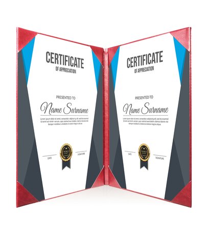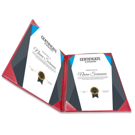 Deze map is vervaardigd uit zacht, hoogwaardig kunstleer, wat zorgt voor een luxe en stijlvolle uitstraling.