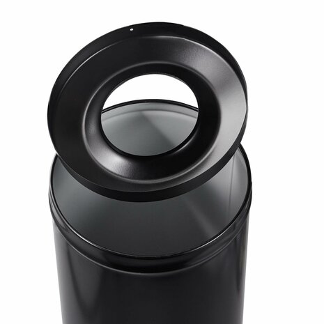 Vuilnisbak met zelfdovende functie Deze vuilnisbak met een inhoud van 30 liter is ontworpen voor gebruik in binnenruimtes waar brandveiligheid belangrijk is. Door de speciale vorm doven vlammen in de afvalbak vanzelf, waardoor uitbreiding van brand wordt voorkomen. De bak is geschikt voor onder andere hotels, ontvangstruimtes, kantoren, gangen en sanitaire ruimtes. Materiaal en gebruik De brandwerende afvalbak is gemaakt van staal en geschikt voor dagelijks gebruik. Het gladde oppervlak is eenvoudig te reinigen en ondersteunt een hygiënische toepassing in verschillende omgevingen. Specificaties Diameter: 24 cm Hoogte: 71 cm Inhoud: 30 liter Materiaal: Staal Vorm: Rond Zelfdovende eigenschappen door speciale vorm van de deksel