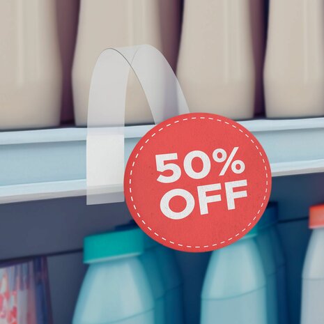 Deze zelfklevende prijswobbler van 150 mm is een ideaal hulpmiddel voor het opvallend presenteren van prijsinformatie, promoties en acties in winkels en op schappen. Dankzij de zelfklevende strip kan de prijswobbler eenvoudig worden bevestigd aan vrijwel elk oppervlak, zoals schaprand of display. De wobbler is flexibel en beweegt lichtjes, waardoor hij de aandacht van klanten trekt en helpt om specifieke producten extra in de kijker te zetten. Specificaties Materiaal: Kunststof Lengte: 150mm Breedte: 15mm Zelfklevende pads: 14mm x 18mm