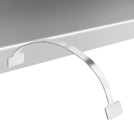 Deze zelfklevende prijswobbler van 150 mm is een ideaal hulpmiddel voor het opvallend presenteren van prijsinformatie, promoties en acties in winkels en op schappen. Dankzij de zelfklevende strip kan de prijswobbler eenvoudig worden bevestigd aan vrijwel elk oppervlak, zoals schaprand of display. De wobbler is gemaakt van aluminium en te buigen in de gewenste stand, waardoor hij de aandacht van klanten trekt en helpt om specifieke producten extra in de kijker te zetten. Specificaties Materiaal: Aluminium Lengte: 150mm Breedte: 20mm Zelfklevende pads: 20mm x 15mm