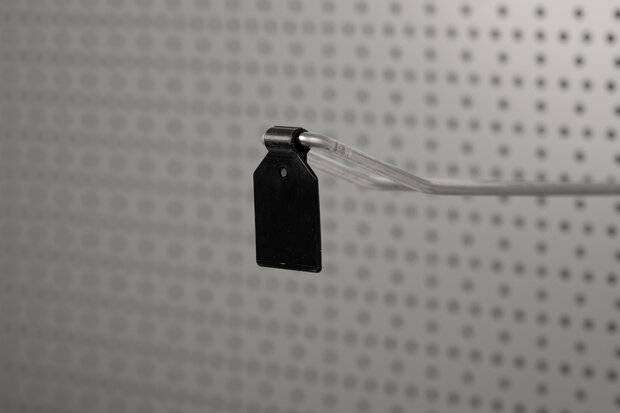 Prijslabel Met deze scanvaantjes bevestigt u eenvoudig prijskaartjes aan de voorzijde van onze dubbele displayhaken. Ze zijn geschikt voor stickers van 25 x 25 mm, die u eenvoudig op de scanvaantjes plakt Type: Wide-6 Deze labels passen op onze metalen displayhaken. Deze scanvaantjes zijn geschikt voor displayhaken met een maximale dikte van 6 mm. Let op: deze Wide-6 scanvaantjes passen niet op onze kunststof displayhaken. Voor onze kunststof displayhaken adviseren wij onze Small-4 scanvaantjes. Deze kunststof haken hebben aan de voorzijde een versmalling van 4mm speciaal voor het bevestigen van de Small-4 scanvaantjes. Specificaties Materiaal: Kunststof Kleur: Zwart