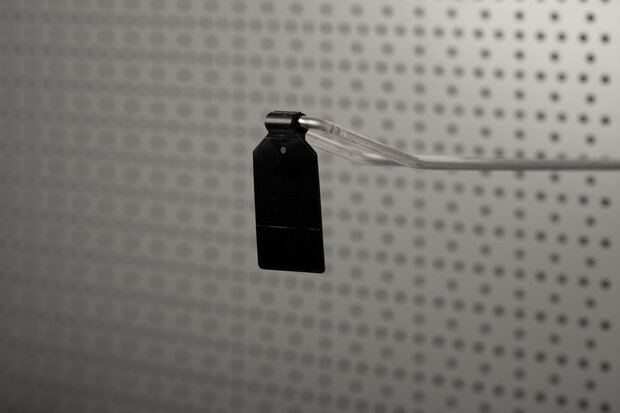 Prijslabel Met deze scanvaantjes bevestigt u eenvoudig prijskaartjes aan de voorzijde van onze dubbele displayhaken. Ze zijn geschikt voor stickers van 25 x 38 mm, die u eenvoudig op de scanvaantjes plakt. Type: Wide-6 Deze labels passen op onze metalen displayhaken. Deze scanvaantjes zijn geschikt voor displayhaken met een maximale dikte van 6 mm. Let op: deze Wide-6 scanvaantjes passen niet op onze kunststof displayhaken. Voor onze kunststof displayhaken adviseren wij onze Small-4 scanvaantjes. Deze kunststof haken hebben aan de voorzijde een versmalling van 4mm speciaal voor het bevestigen van de Small-4 scanvaantjes. Specificaties Materiaal: Kunststof Kleur: Zwart